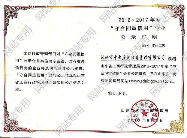 2018年8月,我公司獲評2016-2017年度“守合同、重信用”企業(yè)。